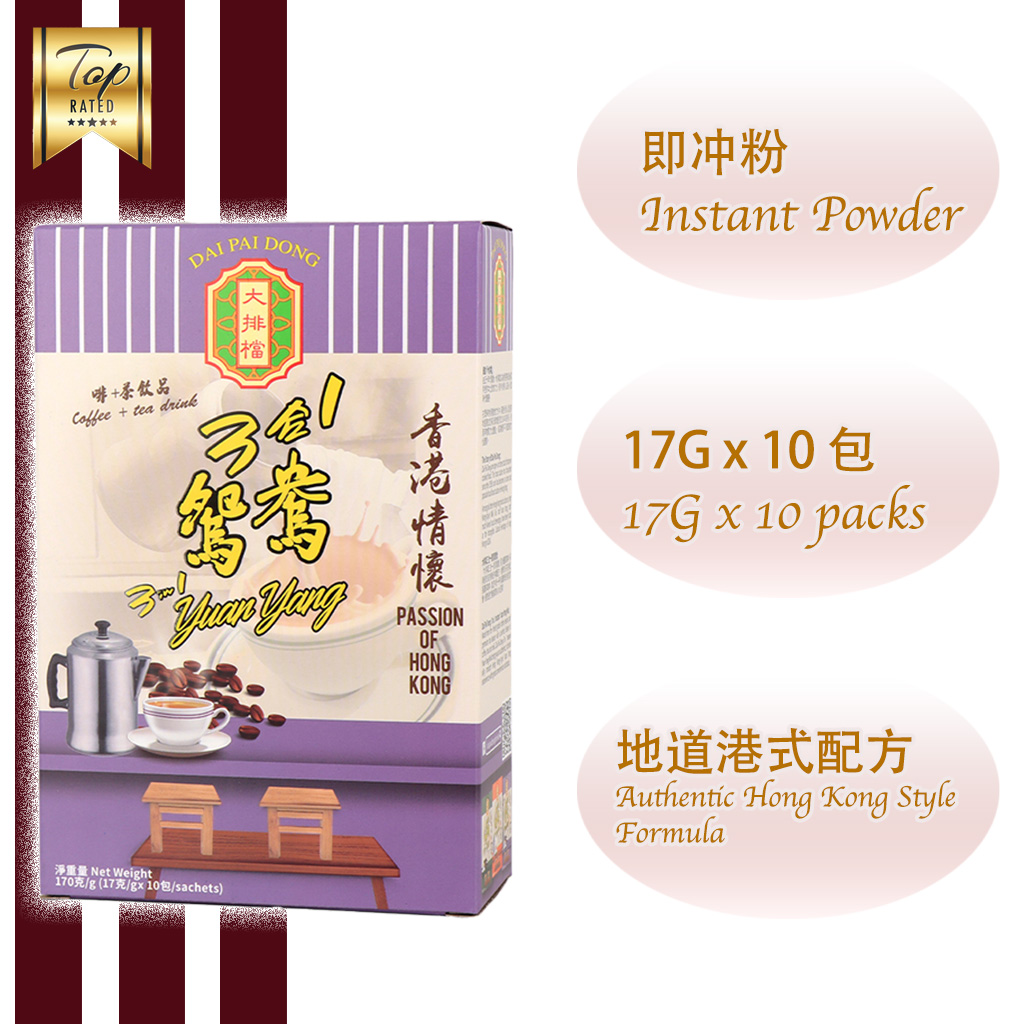 Direct Shipping from Hong Kong, 100% Authentic “Dai Pai Dong” Product This 3-in-1 YuanYang (Coffee+Mix) from the renowned “Dai Pai Dong” brand is a high-selling classic in Hong Kong, offering a unique YuanYang that embodies the city’s distinctive flavors.