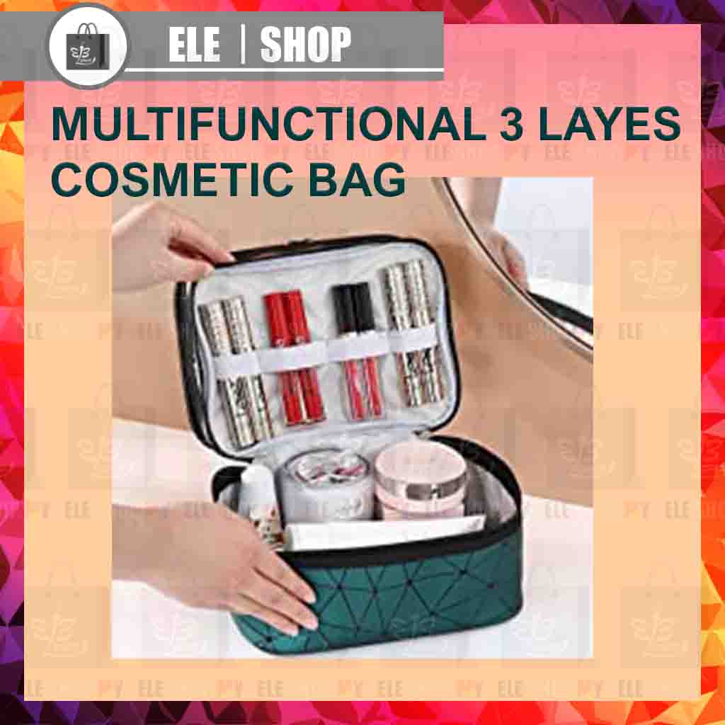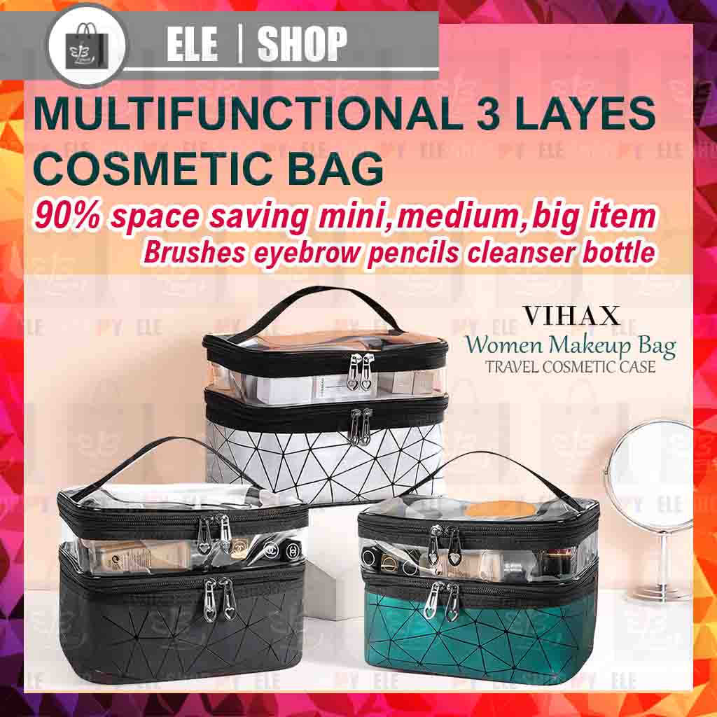 3 Layer Korean Cosmetic Bag Multipurpose Portable Waterproof Make Up Travel Women Transparent bag for eyebrown brushes lipstick cleanser organizer bag Kosmetik bag Dompet 韩系化妆包 (Pink,Blue,Green)