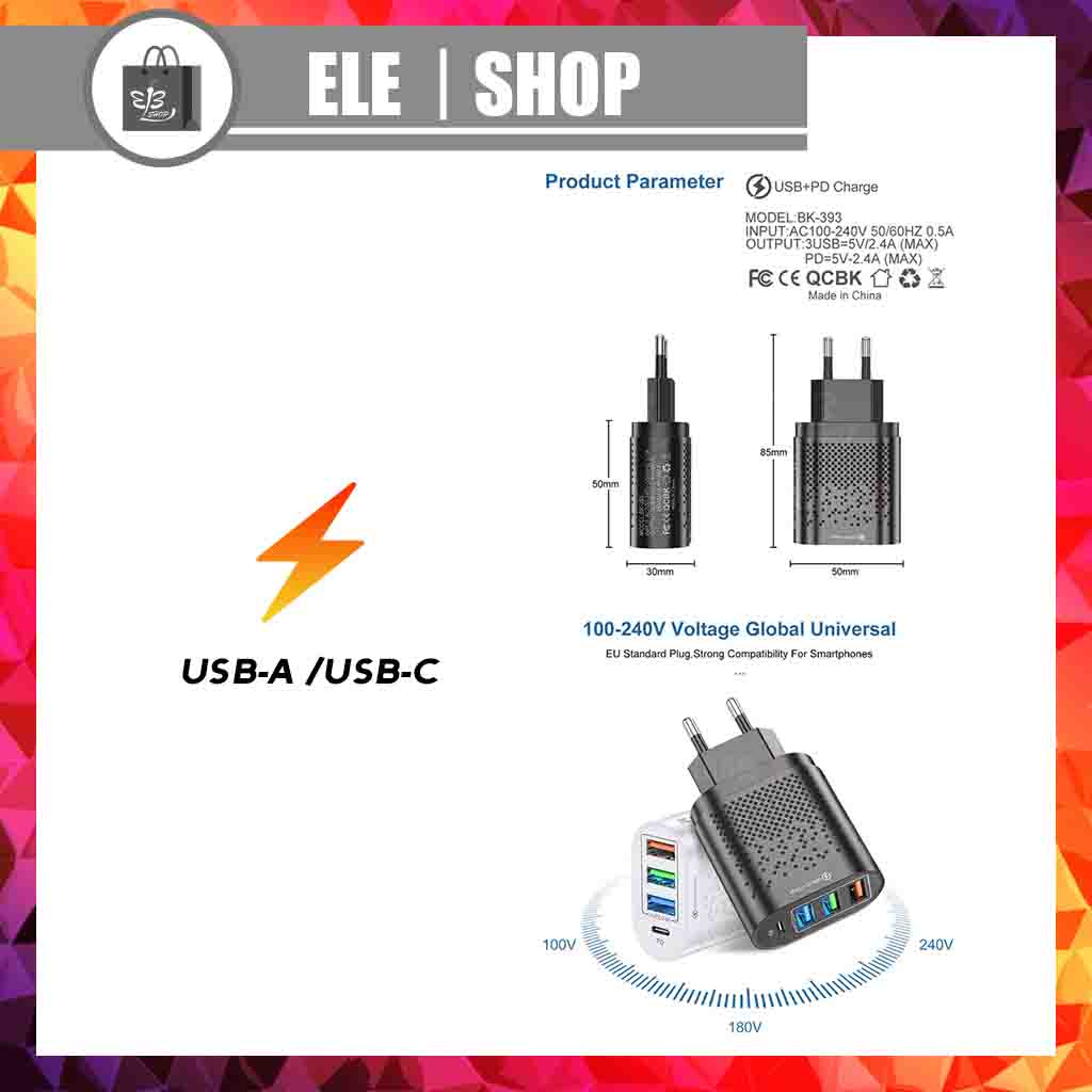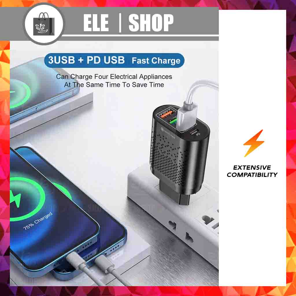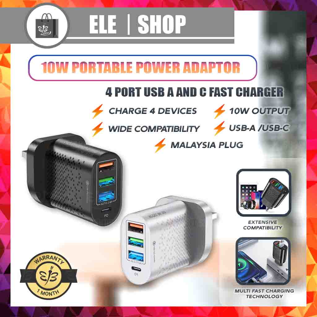 [Free Warranty][USB SET] Malaysia Plug Multiple Port Wide Compatibility 10W Portable Adapter for Type C USB A series Fast Charger PD For IOS iPad Samsung Huawei oppo vivo New model Android phones Nintendo Switch pocket Adapter Fit In Any Handbag