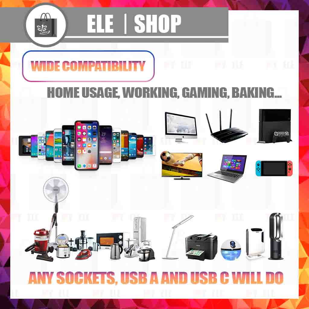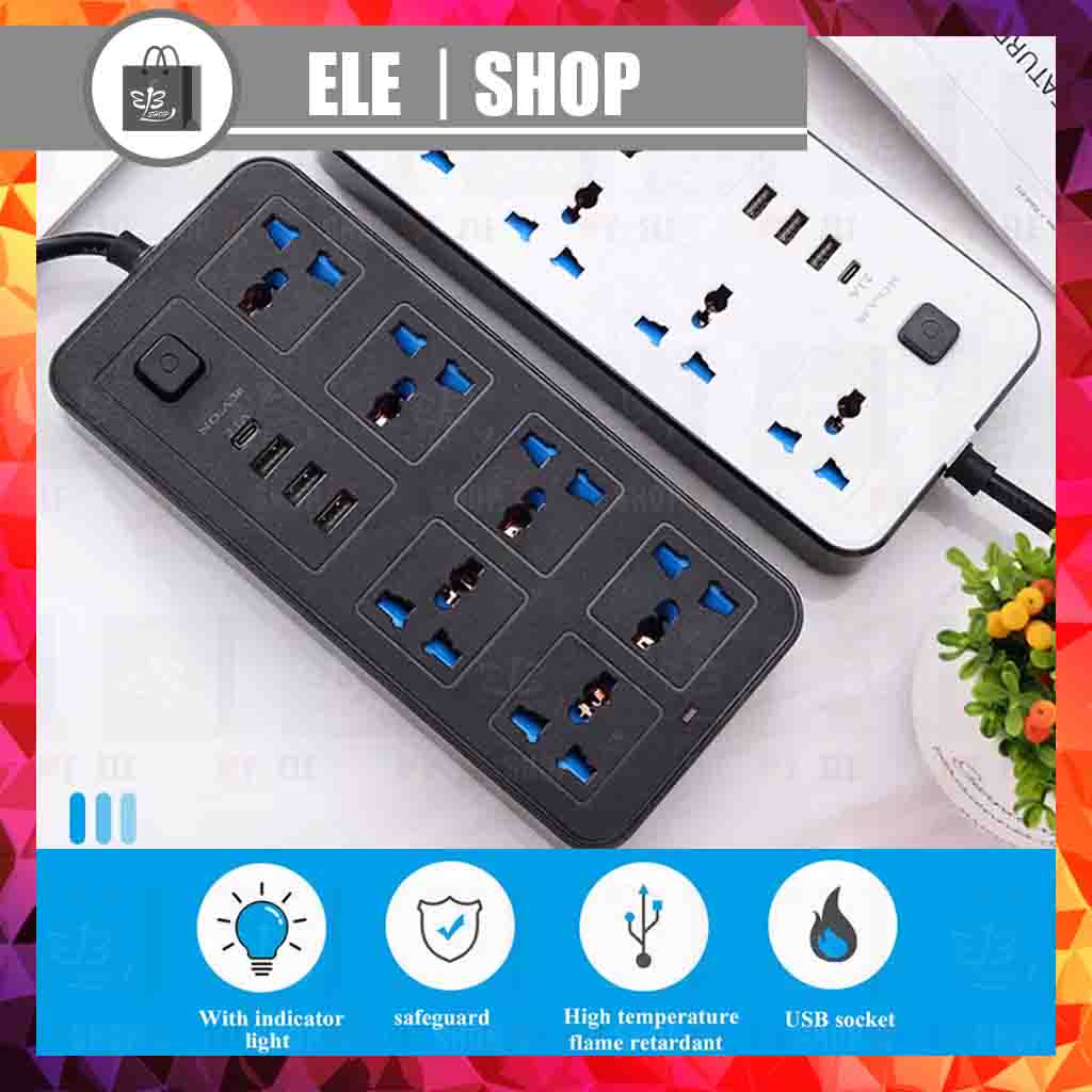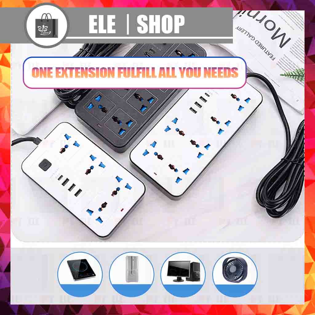 4WAYS 6WAYS 2500W 2 METER with 4 USB Power Socket USB Extension for Iphone , Huawei , Samsung , Vivo , Xiaomi , Honor , LG , Sony , Oppo , Tablets, Laptop, TV, Power bank, etc. 1 Type C slot 3 USB A Slots for office, works Solid Box Package Warranty