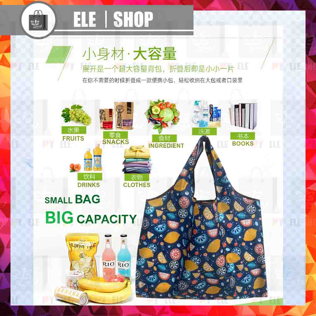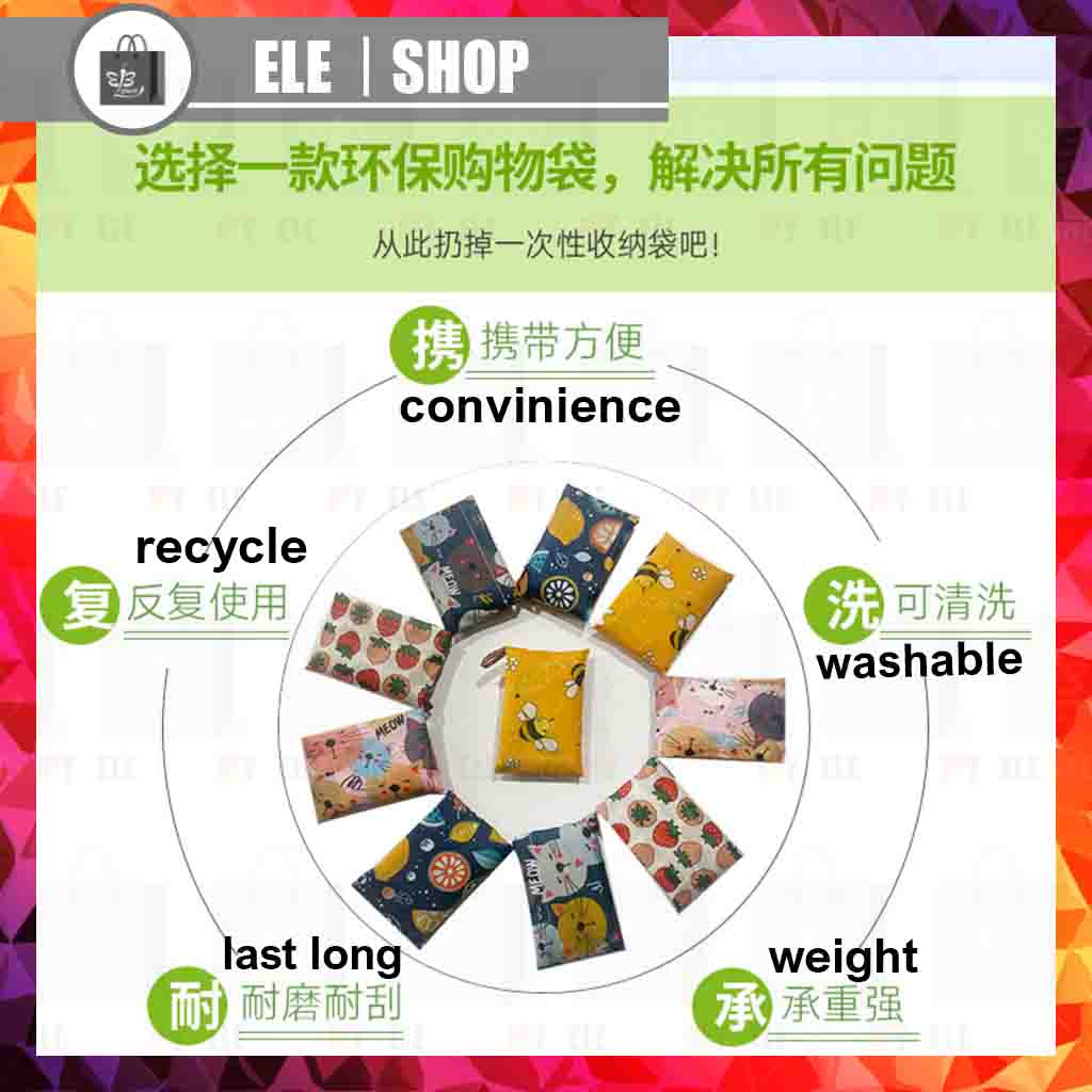 LARGE Waterproof Foldable Stylist Design Grocery Bag Shopping Bag Eco Recycle Bag Reuse bag Travel Tote Pouch Grocery Bag (Snoopy, Moon,Mickey, Star, Elephant, Cat)