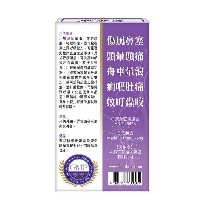 Hong Kong Authentic Purple Oil Zihua Purple Flower Drops 紫花滴 50ml Mosquito Bites Insect Repellent anti-itchiness