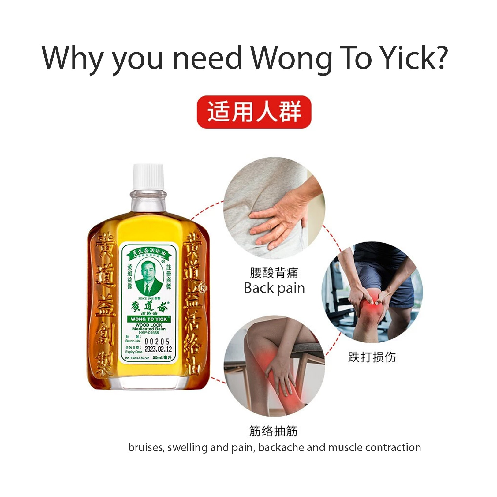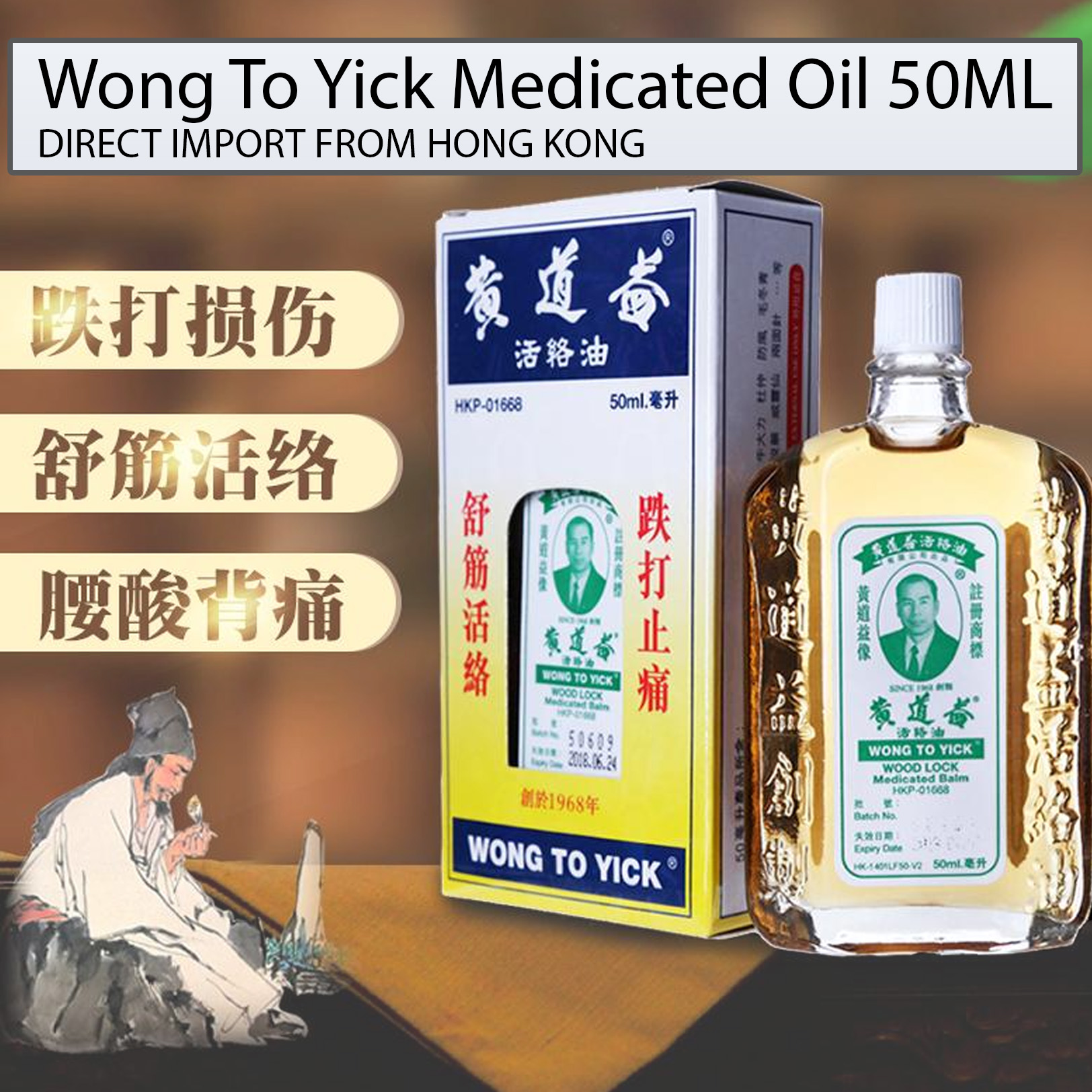 Hong Kong Wong To Yick Woodlock Medicated Oil for Arthritis & Muscular Pain 50ml黄道益活络油50毫升